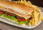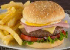 Con Fritas, doble carne, tomate, lechuga, huevo, jamón y queso